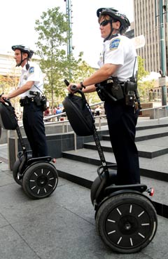 Suffice to say that Vine Street in OTR was most definitely buzzing, what with the Segway dealer setting up a new retail shop, Cincinnati’s most famous and omnipresent Belgian waffle maker, Jean-Francois Flechet, once again peddling his tasty confections streetside, and urban tourists checking out the various condos for sale. By the way, speaking of Segways, I noticed one Segway enthusiast (motorist?) crossing 5th and Vine in front of Fountain Square. As she passed me (her vehicle possessing of an almost Roman-style chariot shield plastered with Gateway Quarter stickers), I heard a cell phone ring, quickly to be followed by the sound of a Segway crashing to the ground. Looking back, I saw said Segway enthusiast sprawled on said ground talking on said cell phone, surrounded by helpful police officers and Downtown Ambassadors. Lesson learned, one can only hope.