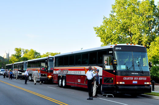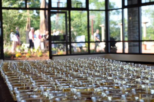 Departing from the river, the caravan ambled up to Clifton and Burnet Woods, where wine quaffing participants took turns sampling salads from Bella Luna and trying out the old stone slide adjacent to the nature center while avoiding concussions in the process. Bonus fact here is that the park system stocks the pond at Burnet Woods, the only place in Cincinnati where you can legally fish without a state license. Burnet Woods also has a hand-cranked planetarium, the oldest one West of the Alleghenies (as an aside, I love it when people use the phrase “West of the Alleghenies.” It is a popular one here, and is always a Commander McBragg style setup for some ancient yet venerable old structure or institution). The busses then cruised back to Mt. Echo for Montgomery Inn victuals and live music of the Django-swing variety provided by the Hot Club of Terrace Park, as fireworks from the Reds game provided the visual stimulus for a great conclusion to the evening.