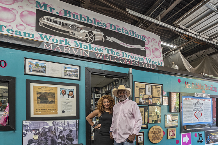 I showed up to the garage located on East 13th Street in Cincinnati’s Pendleton neighborhood, located just east of Over-the-Rhine, to find that Marvin Butts, owner of Mr. Bubbles, doing what he does best, talking with members of the community. Tabatha Anderson, his partner in life and in business, corralled him in to begin our interview. “It’s time to start,” she says to him.