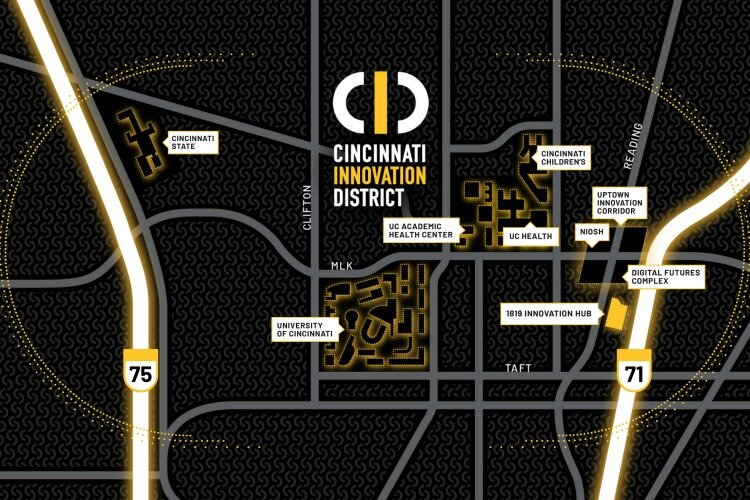 UC and Children’s are considered the anchors of the district, which is located in a part of Cincinnati now called Uptown, surrounding the Martin Luther King Drive exit off of Interstate 71, about a mile north of downtown.