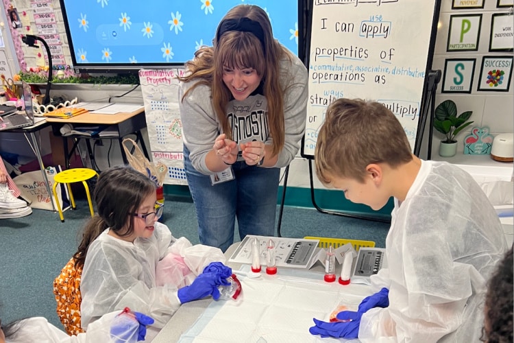 Gravity Diagnostic’s teams visit the school once a month to teach students about career opportunities across multiple departments at the company, not just the sciences. Wheeler’s favorite activity to do with the students involves creating a marketing campaign for an object in the classroom. She said the students can hone their inner creativity and overcome their shyness while presenting their campaign to the class.