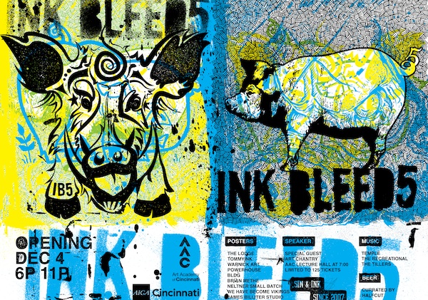 Cincinnati AIGA opens its biennial "Ink Bleeds" exhibit of rock poster art Dec. 4 at the Art Academy of Cincinnati, featuring sales by the artists showing work, live music, beer, food and a talk by Art Chantry, “the Godfather of modern rock poster design.”