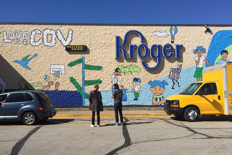 When they got involved in creating the “Love the Cov” mural to decorate the Madison Avenue Kroger location in Covington that had just undergone a $800,000 renovation on the inside, dozens of stakeholders were consulted to get a sense of what they identified with in their neighborhood.