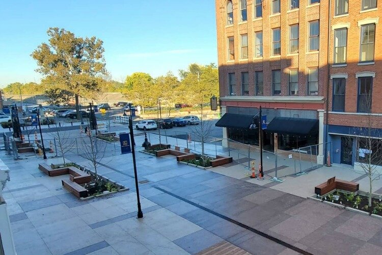 The Landing is designed to be a gathering space with minimal traffic and a variety of shops, restaurants, and amenities. Last week, city officials, residents, and representatives from The Model Group celebrated the completion of the streetscape work, which includes a pedestrian-friendly plaza with trees, landscaping, benches, and lighting.