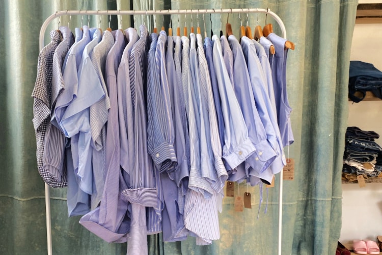 We offer upcycled, tailored shirts that are sourced and sewn locally. This reduces shipping and associated carbon emissions, saving clothing from landfills and reducing material waste.