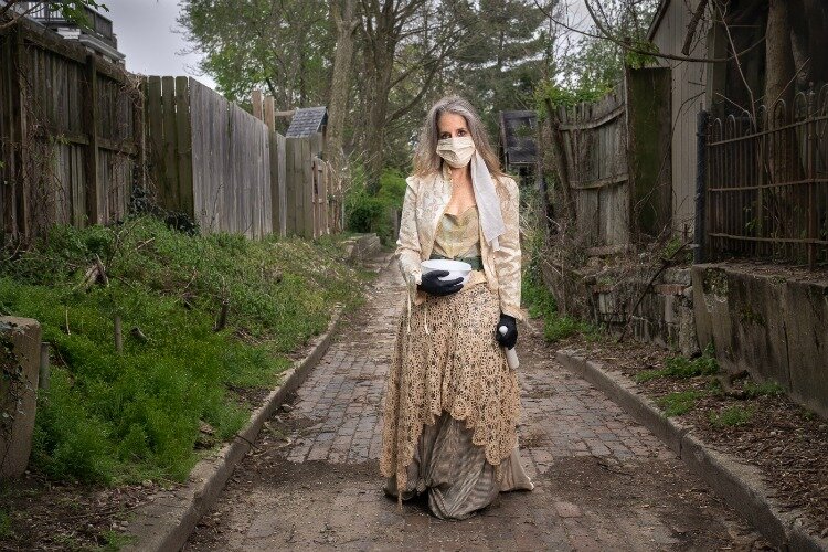 In the wee hours of the morning at the beginning of the state’s shutdown in response to the COVID-19 crisis in mid-March, fine art photographer Tina Gutierrez began formulating a plan – create an art project that would let people share how they felt about the pandemic through clothing. And thus, her coronavirus wearable art portrait series was born.