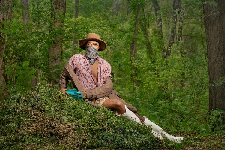 For the last three months, Gutierrez met nearly 100 subjects in parks and wooded areas, photographing them in the elements as a way to measure time visually by the change in foliage. From six to 10 feet away, these amateur models posed and gave explanations of their outfits while being photographed.