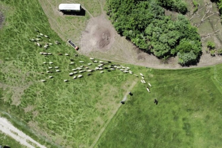She pointed to the concept of enterprise stacking, which rotates species strategically around Flourish and Roam’s acreage. Using a mobile chicken coop, the farm’s workers will release the birds to forage, ultimately leaving droppings that create a natural fertilizer. Once the scat has been absorbed into the soil, the nutritionally enriched grasses provide healthy fodder for its cattle to eat and grow. And, instead of relying on pesticides or bulldozers to combat invasive species such as honeysuckle, the Ison’s unleash their sheep to forage to mitigate its growth.