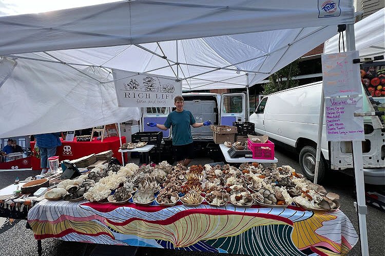 The Richmans christened Rich Life Farm, and began production in 2021, peddling their wares at the Hyde Park Farmers Market (May-October in Hyde Park Square, November-April at Madtree), and eventually adding the Northside Farmers Market on Wednesdays from spring through fall. The Richman’s growing capacity spans 2,000 square feet, with an annual yield of approximately 500 pounds. Two of its most popular varieties include blue oyster, a versatile performer that accounts for roughly half of its production, and lion’s mane, a uniquely shaped variety with known medicinal purposes that also contains high levels of moisture and replicates seafood quite well.