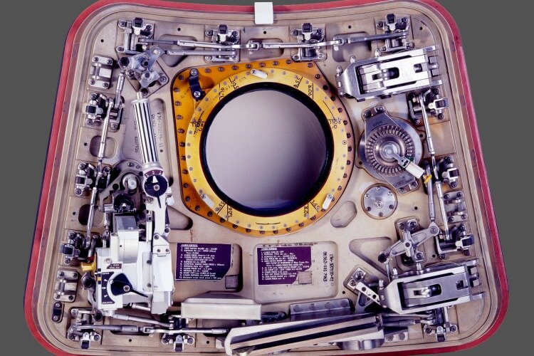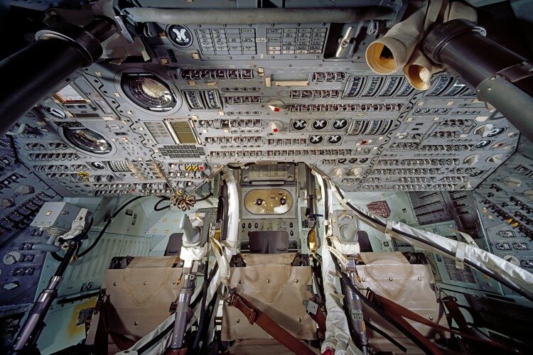 The command module has been encased in a Plexiglas shell since it went on display at the National Air and Space Museum. When it was being moved out for renovations, it was the perfect opportunity to open it up, do some restoration work, and preserve images of the interior for the digital age.