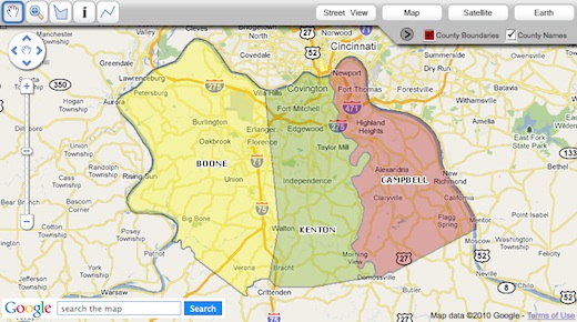 Through this state-of-the-art location tool, businesses and real estate professionals can access valuable information critical to expansion and relocation decisions in Northern Kentucky. Obtain economic, planning, geographic and demographic information with a few simple clicks. Northern Kentucky Locator allows users to perform customized site and building searches, view, create and print maps, as well as customize and analyze demographic and business data. For further assistance, contact Tri-County Economic Development at 888-874-3365 or info@NorthernKentuckyUSA.com.