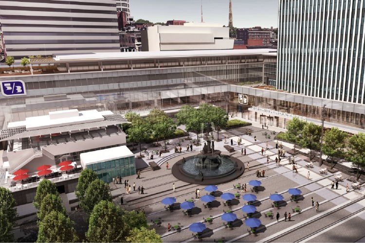 The expansion project is expected to begin this spring and be completed in 2020. It will create a more prominent entrance to the bank from the Square, as the lobby will be expanded to include renovated retail space, a two-story atrium and a newly designed financial center. The atrium will let in natural light and open the lobby to the square. The project also will connect the bank’s two towers on the first floor as well as the second.