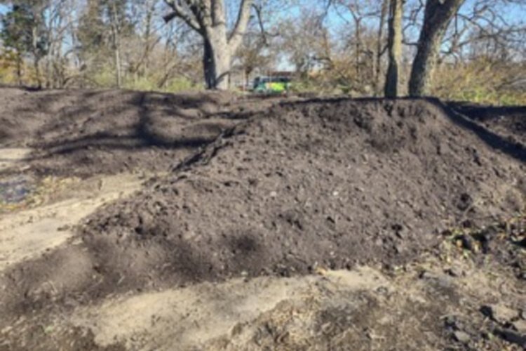 The city has been composting leaves from its annual leaf pickup on an FTFC property. After four years, the leaf compost is now ready to return for garden use. From the beginning of the project, the intention was to return the product to the public as well as to the city and green organizations for use in public gardens and spaces.
