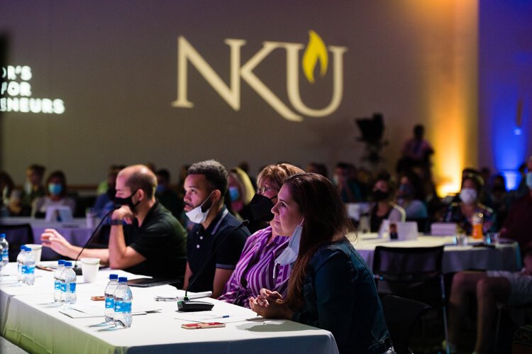 Eighteen teams of four strode to the balloon-decorated Northern Kentucky University stage as energetic walk-up music played. Each team had eight minutes to convince judges why their business proposal was the best.