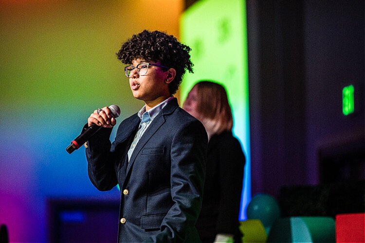 LeAnn Campbell, a student at Breathitt County High School, was part of the team Pre-Covery, which pitched an app showing teens how to protect themselves from sports injuries. Because of flooding in her hometown of Jackson, Kentucky, LeAnn had to go home the day before Demo Day. Her team persevered with only three students onstage.