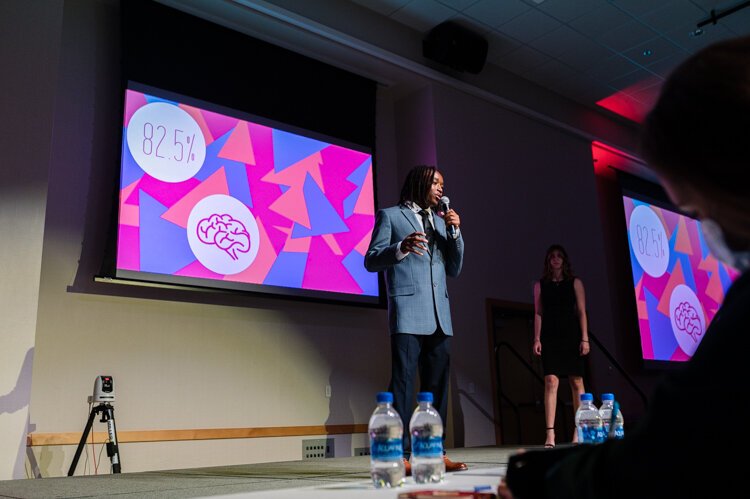 Jack Wilson of Highlands High School in Fort Thomas was a member of second-place winner TestPeak. Team members described their own struggles with test anxiety and shared stats showing it’s a widespread issue, significantly worsened during the pandemic.