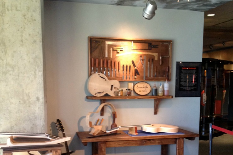 The exhibit provides ample hands-on opportunities to explore “the balance of craftsmanship and technology” that goes into the design of an instrument easily taken for granted. Visitors can hear, feel, and experience for themselves how different types of wood and strings, for example, have their own distinct sound qualities. And how technology converts sound vibrations into electrical signals, a development that has revolutionized the guitar and music world in unforeseen ways.