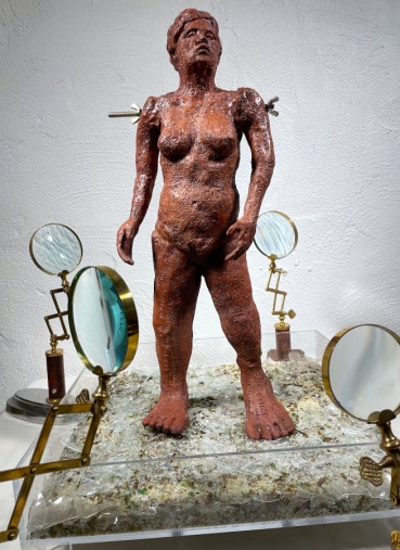 Attention Must Be Paid, Robert Coates, Ceramic with stain, metal, acrylic base,