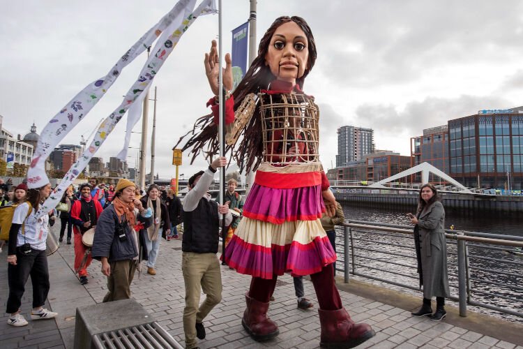 Amir Nizar Zuabi, artistic director of The Walk, describes the event as a way to highlight the potential of refugees, not only their dire circumstances. “Little Amal is (12 feet) tall because we want the world to grow big enough to greet her,” he comments. “We want her to inspire us to think big and act bigger.”
