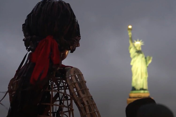 The 12-foot tall puppet, in the embodiment of a 10-year old Syrian refugee girl, will have begun her six-thousand miles long walk across the United States on September 7th in Boston and set to arrive in San Diego on November 5th.