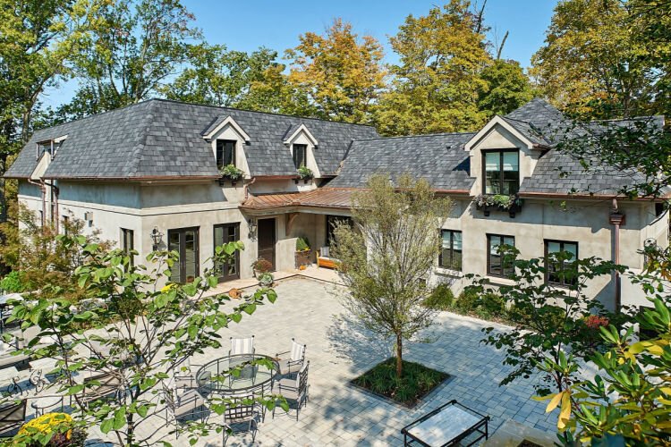 “A lot of outdoor spaces are actually a building – a porch, a gazebo, a pool house – or they have a building component like fireplaces or retaining walls,” said Schaub. “Hard surfaces are generally in the architect’s realm: deck, terrace, patio, or driveway. We think of it holistically – how the house connects to the outdoor spaces.”
