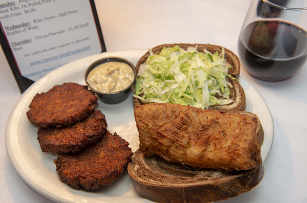 There are still some traces of Maury Bibent himself hanging around, including the trademark bull logo — in homage to his horoscope sign: Taurus — and menu items named after his family members and beloved local sports teams, many of which he sponsored. Huesman has introduced some of his own family heirlooms, as well, like a model beer train over the cove bar and a collection of antique Royal Doulton toby mugs up in Maur’s Bar.