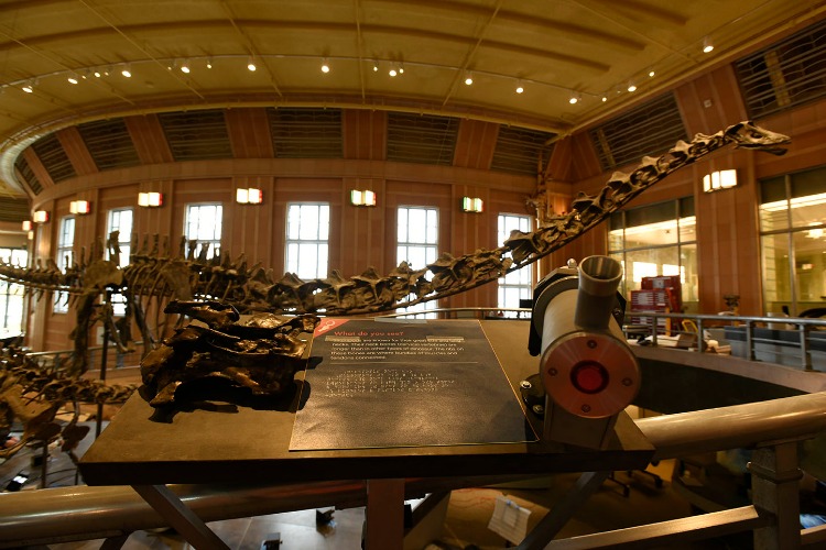 Last but not least, visitors have the opportunity to experience the prehistoric world through multi-sensory, interactive elements. You can take a virtual reality flight through the Late Jurassic period to experience the world of dinosaurs from the perspective of a bird; do your own exploring through video microscopes; or step back for some big-picture context with the help of an interactive globe that shows how the earth’s continents are thought to have shifted over time.