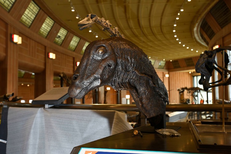 Also making its debut at the Cincinnati Museum Center (CMC) is the Galeamopus, a long-necked herbivore standing at 50 feet long. Discovered in Montana in 2000, the fossilized remains have since been excavated, cleaned, studied, and preserved.