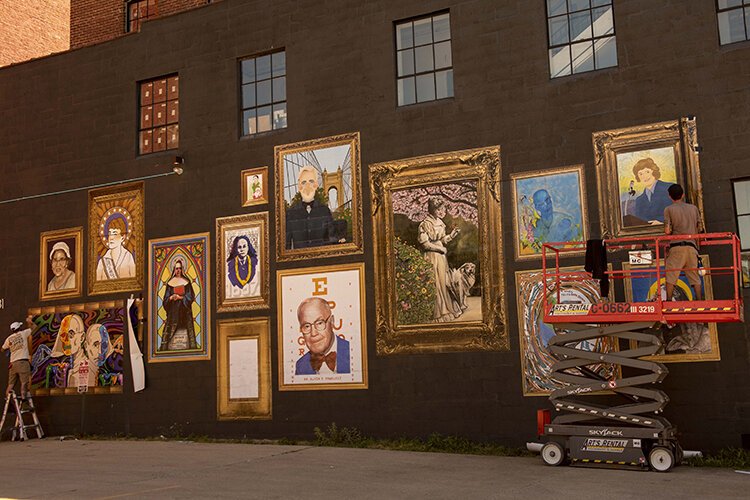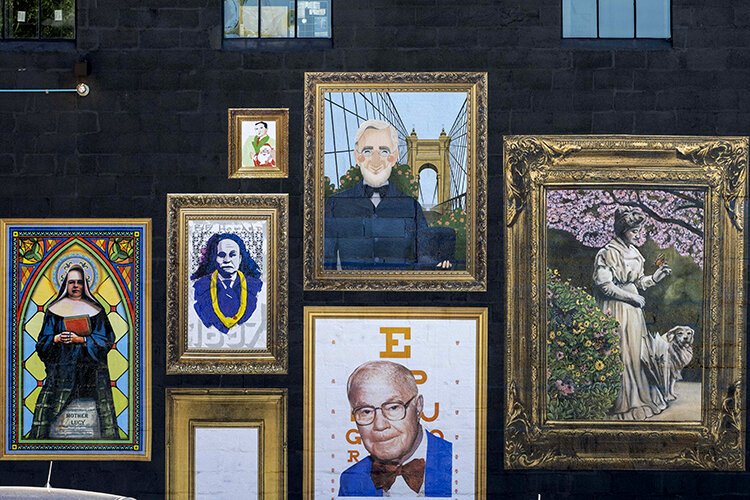 The 36-by-36-foot mural depicts portraits of innovators spanning two centuries in science, manufacturing, civil rights, inventing and songwriting. QR codes give biographical information on all 13, which includes the man behind the Roebling Suspension Bridge (Amos Shinkle), and the woman who helped inspire the opening of St. Elizabeth Hospital (Henrietta Cleveland).