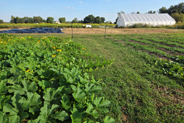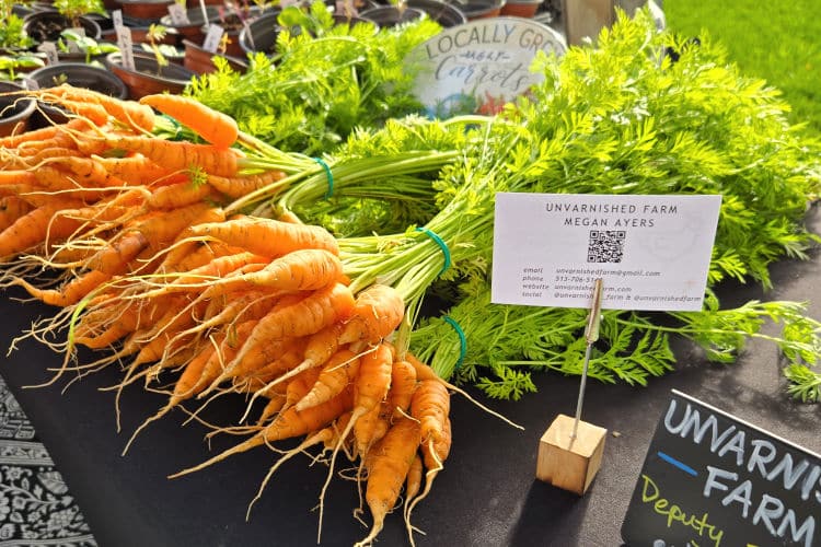 By this time, Ayers ran Parkland Homestead Farm, where she helped to feed her neighbors through a community supported agriculture program (CSA), the Cheviot farmer’s market, followed by the Covington Farmer’s Market, all while farming on one-tenth of an acre. Ayers and her husband were looking to expand their farm as he began searching outside of Cincinnati for work, eventually landing on his dream job in Louisville. That’s when she bought what’s now known as Unvarnished Farm in Deputy, Indiana, where she farms today.