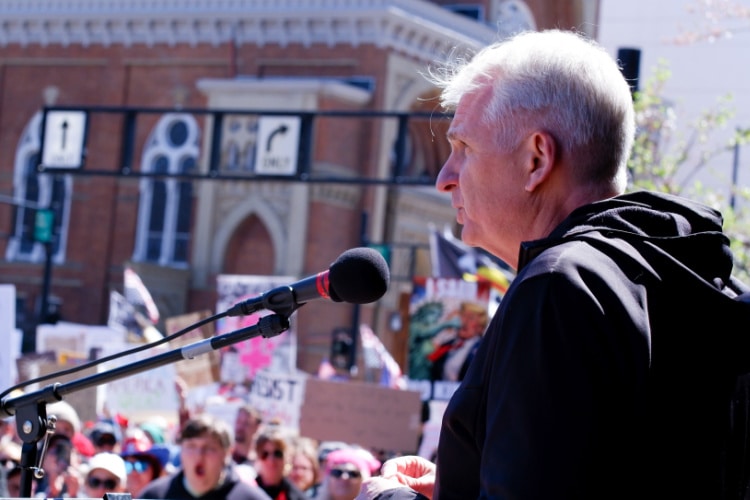 The speaker lineup reflected that range. Historian Timothy Snyder, whose work focuses on authoritarianism and the fragility of democracy, stood alongside labor leadership, including Brian Griffin of the Cincinnati AFL-CIO Labor Council, local organizers like Krysti Paul, activists including Jordan Engelke, and civic voices such as Claire Wagner of the League of Women Voters of the Cincinnati Area.