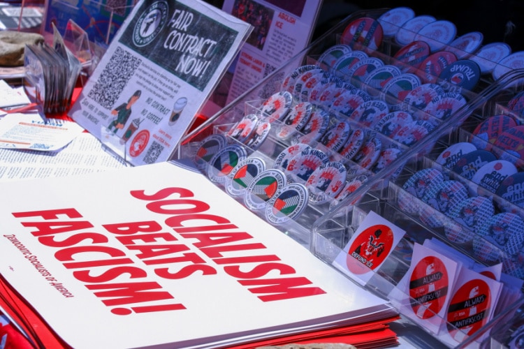 Along the perimeter, tables weren’t symbolic. They were operational. Local groups were signing people up on the spot for voter registration efforts, labor organizing conversations, and mutual aid networks already active across the region.