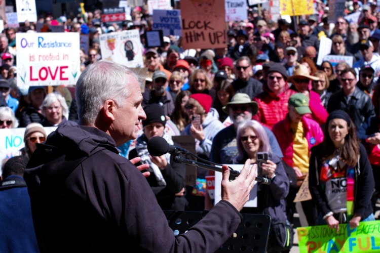 Snyder gave that tension language. Saying “No Kings,” he told the crowd, defines what people are resisting. It does not define what they are building.