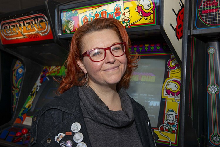 Joe Simon – Leslie Rich, Westwood Works director, at the soon-to-be-opened retro arcade she and her husband own.