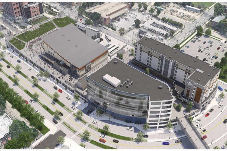 A hotel and office space were announced in 2020 as part of the second phase of Ovation in Newport. A 125-room Homewood Suites by Hilton and roughly 100,000 square feet in office space are planned. The hotel will have suites with skyline views and two bars, including one on the rooftop. Plaza-level retail is also part of the plan, Corporex says.