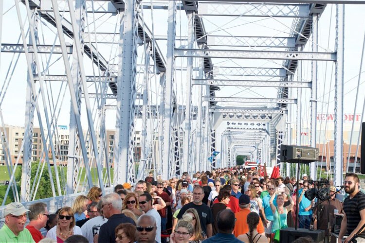 The bridge opened on April 1, 1872, seven years after the end of the Civil War, as the first railroad bridge spanning the Ohio River between Cincinnati and Northern Kentucky. It was known as the L&N Bridge for decades, although it was closed to rail traffic in 1987. In late 2001, the City of Newport and Southbank Partners received $4 million in state funds to paint and restore it.