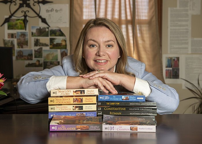 Heather Grothaus began reading romance novels as the tender age of 13, surreptitiously perusing her mother’s collection of novels written by Kathleen Woodiwiss, a pioneer of the genre.