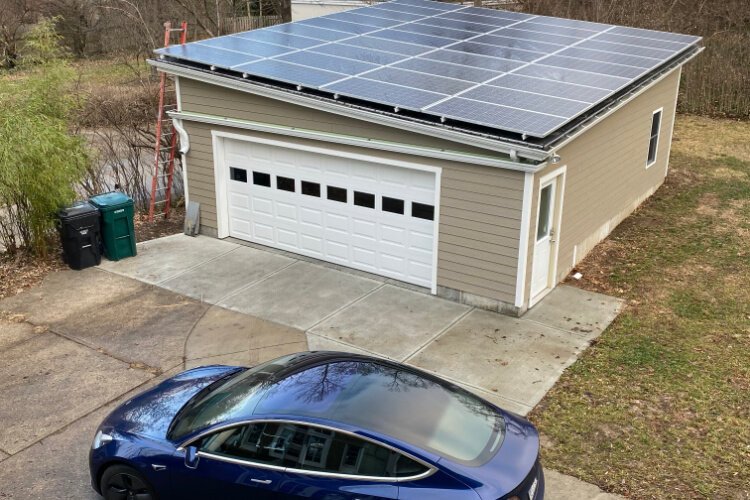 DeJong decided he was going to use the renewable energy available to him from the sun and turn it into electricity. First, however, he needed a solid plan of action. After the trial of grant writing, approvals, and choosing where he was going to build, he got to work. Down came his original garage and up went a two-car structure that he designed to hold 36 solar panels (and charge both he and his brother’s Teslas).