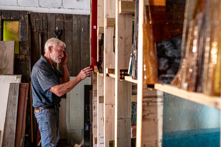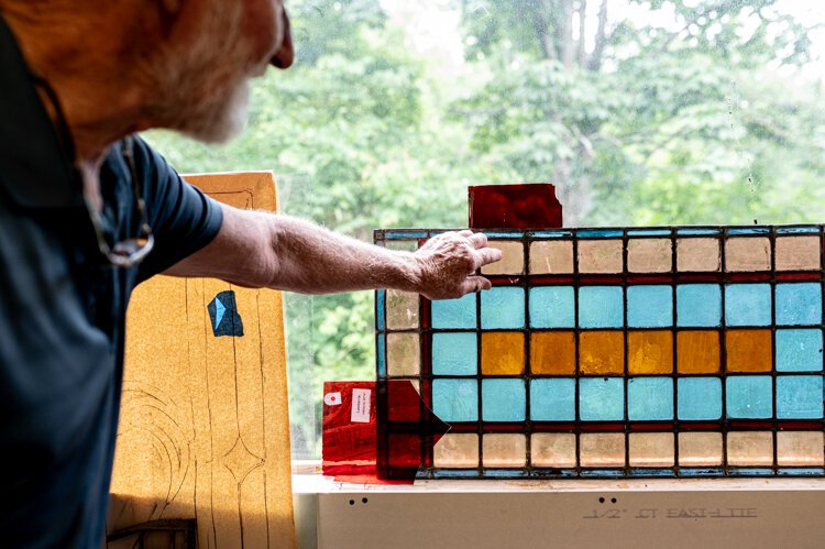 As is often the case with craftsmen, Rasche has acquired many skills in his 73 years. He says his expertise is stained and leaded glass restoration and repair, but he can also build glass panels from scratch. His niche skill is color; and texture-matching glass.