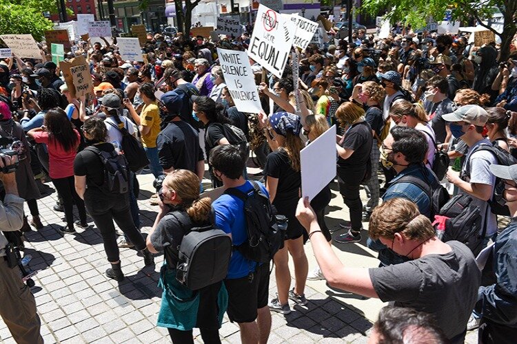 So to hear that 20 minutes later, people were throwing water bottles at police and they shot rubber bullets, those weren’t the same people we were marching with. There was a woman who brought her golden retriever and the dog was carrying a sign in his mouth and everyone was laughing and clapping for the dog. It was so peaceful, everybody was chill and probably exhausted that I just cannot imagine them doing something violent.