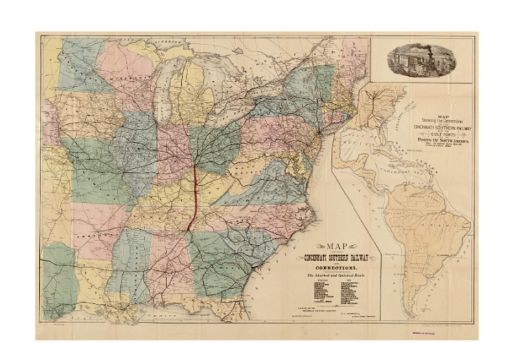 Library of Congress – An 1879 map showing the route of the Cincinnati Southern Railway