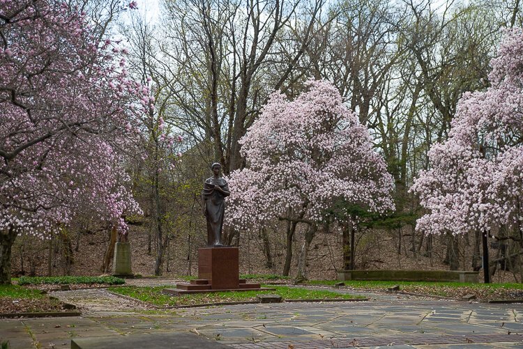 Khmelnitsky and Hrushevsky are recognized by bronze plaques displayed at the gardens entry—the work of noted sculptor and Cleveland native Frank Jirouch.