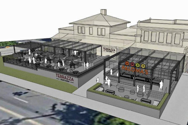 The proposal, by Frank Eversole and Rick Pouliot, owners of EP Investments, would convert two 1920s-era funeral home structures, the former Bolton & Lunsford Funeral Home, into two restaurants. One will be a mid-priced Italian dining restaurant named Terrazza Trattoria, occupying the north building, the other will be an affordable Mexican grill-style restaurant and bar named Paloma’s, in the south building.