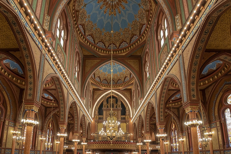 The remarkable architecture and design of the Isaac M. Wise Temple is a landmark in downtown Cincinnati. It is also a historic center of Jewish life, as Isaac Mayer Wise founded the institutions of Reform Judaism, including Cincinnati’s Hebrew Union College, while serving as rabbi there in the late 19th century. This striking temple was built at the corner of Eighth and Plum in 1866 in a Byzantine-Moorish style, and was designated a national historic landmark and placed on the Department of the Interior’s National Register of Historic Places in 1975. The synagogue, K.K. B’nai Yeshurun in Hebrew, is used nearly every week for Sabbath services, major life events and other religious functions.