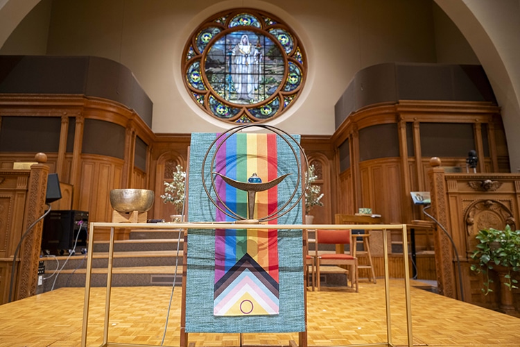 In 1830, a group of transplanted New Englanders joined together to form the First Congregational Church of Cincinnati, a congregation affiliated with the American Unitarian Association. Their first meeting house was on Fourth Street in the heart of the city. In the 1880s, the congregation voted to move to Avondale, which was then considered the suburbs. The church’s current site at the corner of Reading Road and Linton Street was purchased in 1888. The sanctuary is graced by a distinctive wood-carved pulpit, and several Tiffany windows were added in 1900. In the early 20th century, the church changed its name to First Unitarian Church. Among its members have been former president William Howard Taft and artists Charley and Edie Harper.
