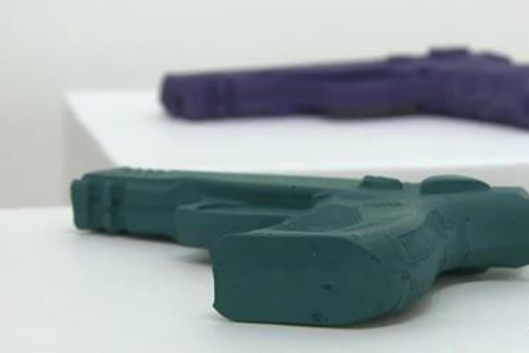 Meanwhile, her husband changed his exhibit, now titled “Negligence,” and cast 29 guns out of crayons, one for every day between the shooting and the opening of his exhibit. Currently, it’s in Louisville’s Tim Faulkner Gallery through the end of the month. Part of the proceeds will go to WhitneyStrong.