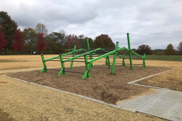 The new features at Woodland Mound include inclined monkey bars, vault bars, and a weaver that can be used in multiple ways. The equipment is made out of steel, includes natural wood fiber safety surfacing, and can be accessed along a 1.2-mile paved trail. Following this installation, Great Parks is looking into funding to add additional features and a connector path to create an ADA-compliant obstacle course circuit.