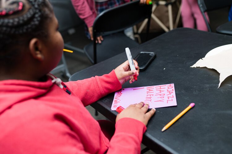 Armed with colored paper, pencils, paint, markers, and glitter, a group of 10-, 11- and 12-year-olds in Cincinnati’s West End are creating handmade Valentine’s Day cards for someone special in their lives.