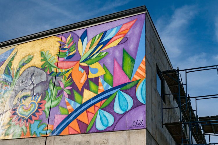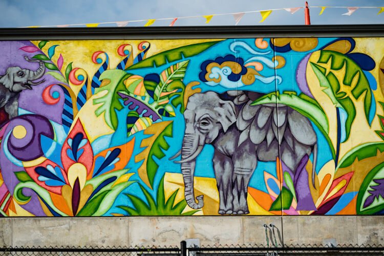 Expansive elephant mural depicts feelings of peace, joy, togetherness, and community