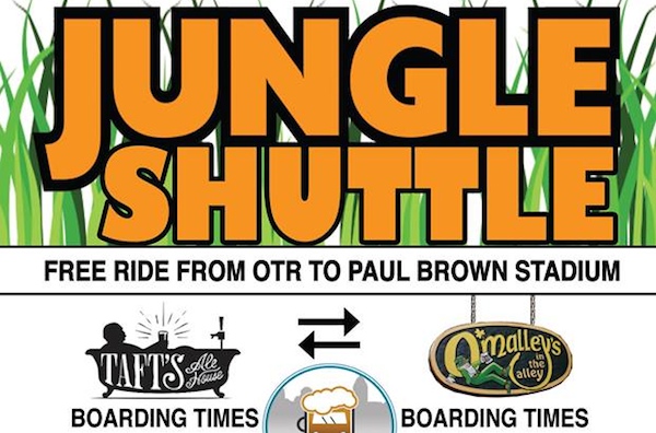 On game days, the shuttle will leave from Taft’s at 10:40 a.m. and will make trips every 20 minutes to O’Malley’s in the Alley near Paul Brown Stadium. O’Malley’s is the first bar to offer Taft’s beer outside of the actual brewery, and current offerings include Nellie’s Key Lime Caribbean Ale on tap and Cherrywood Amber in cans. Each shuttle rider will receive a wristband for $1 off Taft’s beer at O’Malley’s on the day they ride the shuttle.